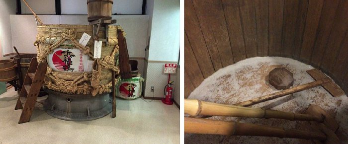 こちらはお酒を作る時に使用していた道具の展示コーナー。それぞれに使う目的があり、使い方や用途が記していましたよ。右側の道具はお酒を詰めていた樽です