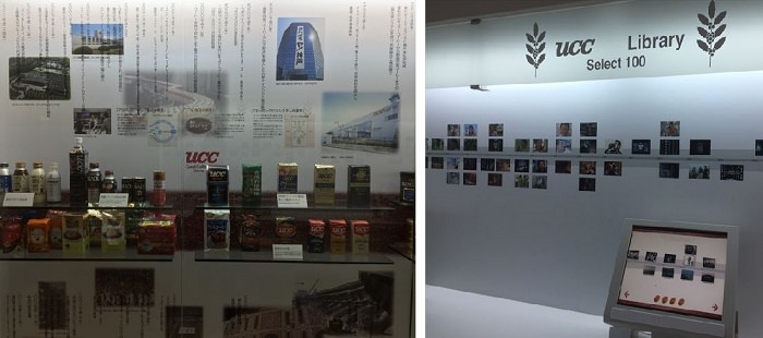 常設展示室以外にも、展示室2と展示室3の間にはUCCヒストリーコーナーがあります。ここにはUCCを創業した上島忠雄さんや、UCCの歴代の製品、CMアーカイブが展示されています。