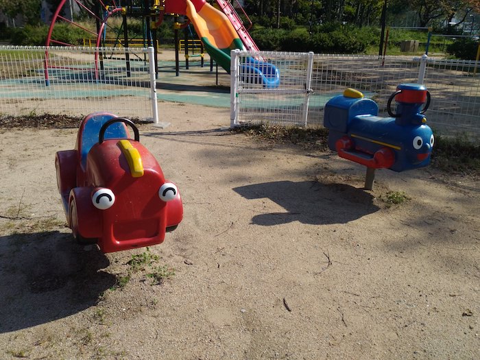 ほかにも、車や機関車をかたどったユーモラスな乗り物遊具もありましたよ。