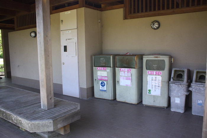 トイレの前には待ち合わせベンチがあり、ごみ箱も設置されています。