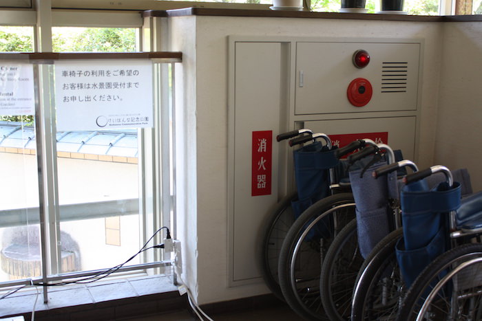 ビジターセンター近くの身障者駐車場には、竹ぼっくりや竹馬もありました。