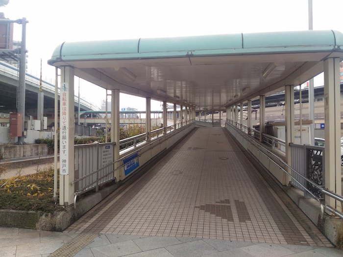 「神戸駅」には改札が二か所あります。西出町公園に行くならビエラ神戸口から出ましょう。改札出てすぐに左へと曲がり外に出ます。