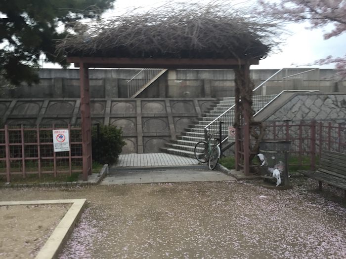 こちらが「さくらの広場」です。その名の通り、桜があちらこちらで咲いていました。遠くに見えるのは武庫川団地です。