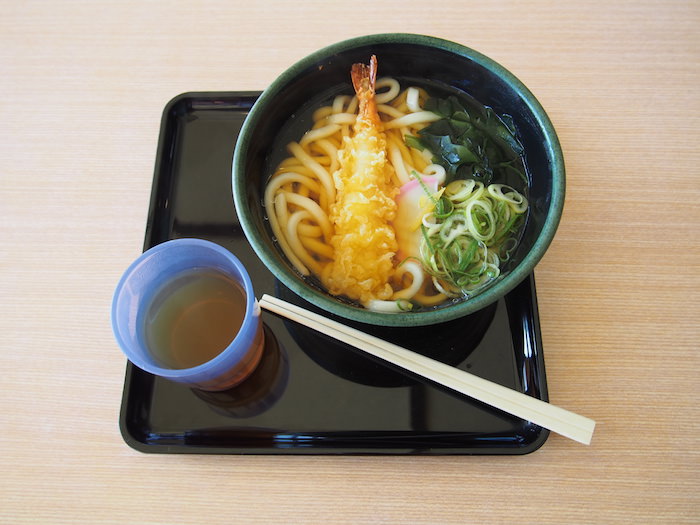 「観音茶屋」はうどんやそばが中心。食券を購入し、自分で受け取るセルフサービスを採用しています。私は「天ぷらうどん」を注文しました。価格は650円。