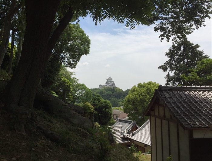 写真は姫路城の西の丸長局(百聞廊下)から見た男山です。